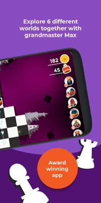 Through a smooth game progression, you’ll be introduced to each chess piece while exploring six different worlds together with grandmaster Max. Step by step, you’ll solve chess situations with more and more pieces, and learn to apply more and more chess rules. Eventually, you’ll meet bosses who challenge you to use your newfound skills in a game of chess.